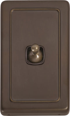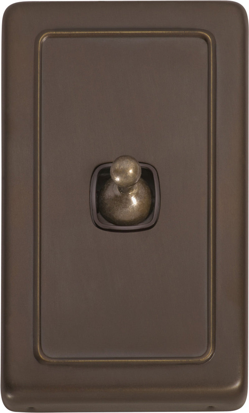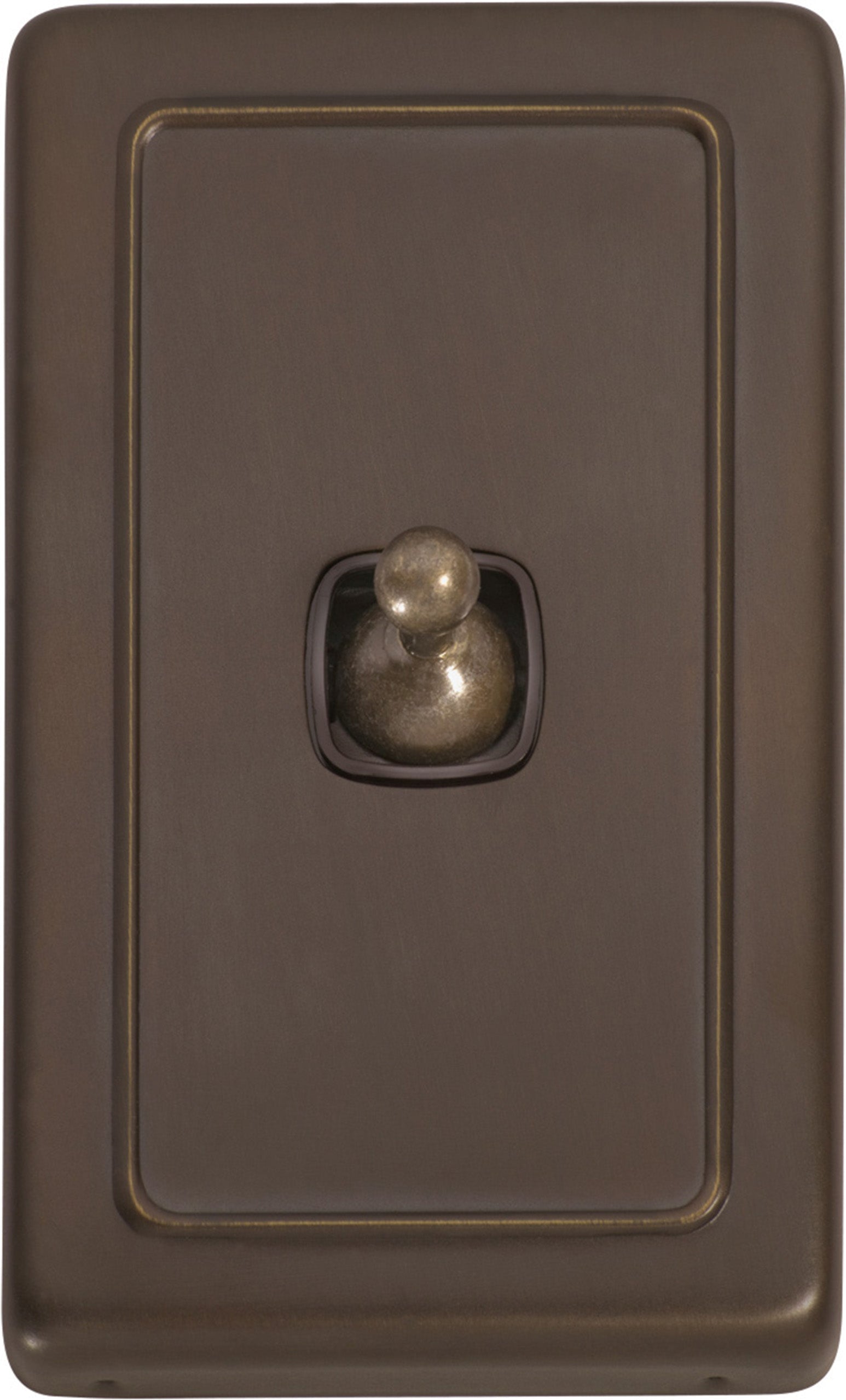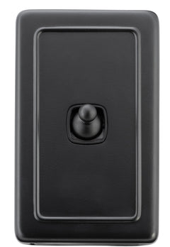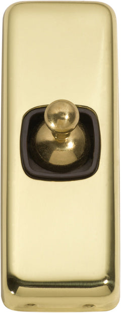 Flat plate 1 gang toggle switches with brass covers and HPM mechanisms. Matching sockets and compatible accessories also available.