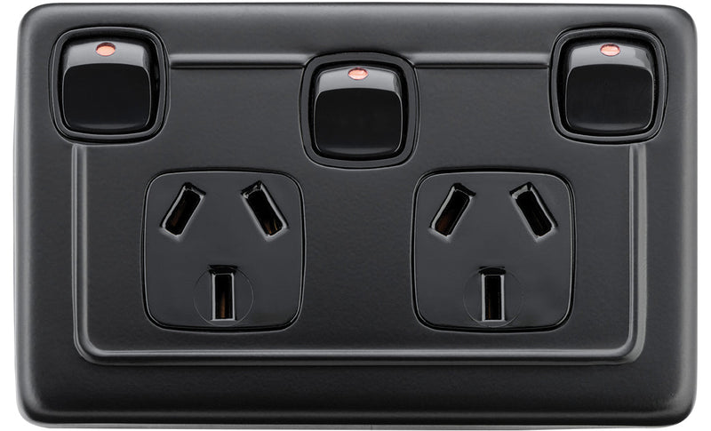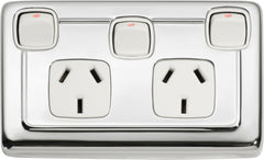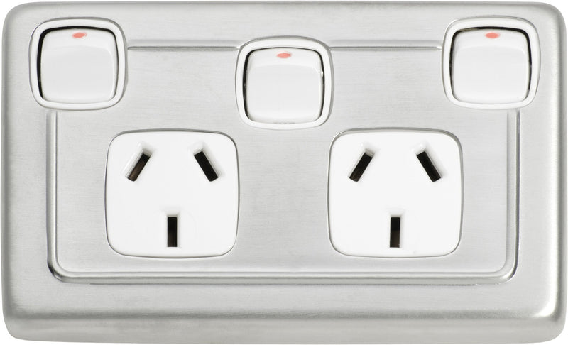 3 Gang Flat Plate Rocker Switches with Double Socket