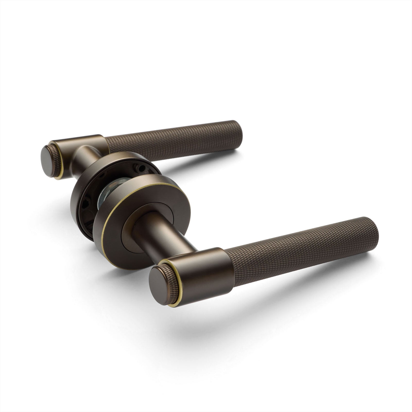 Aged Brass Knurled Passage Door Handle - Rosedale