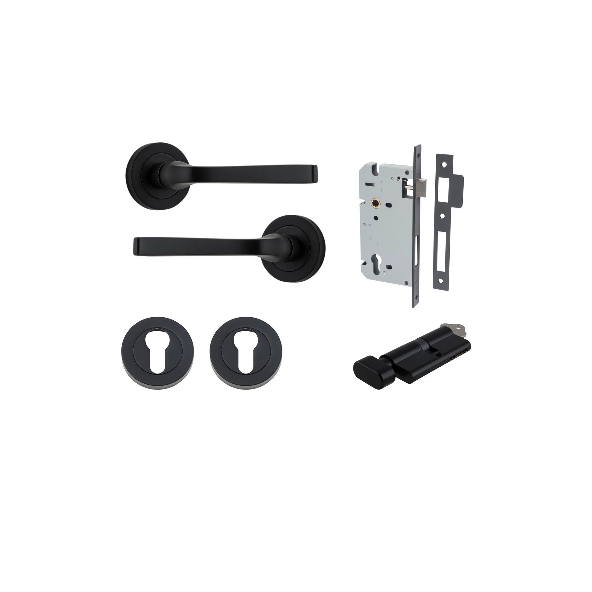 Annecy Lever - Round Rose Entrance Kit with Separate High Security Lock Turn Cylinder