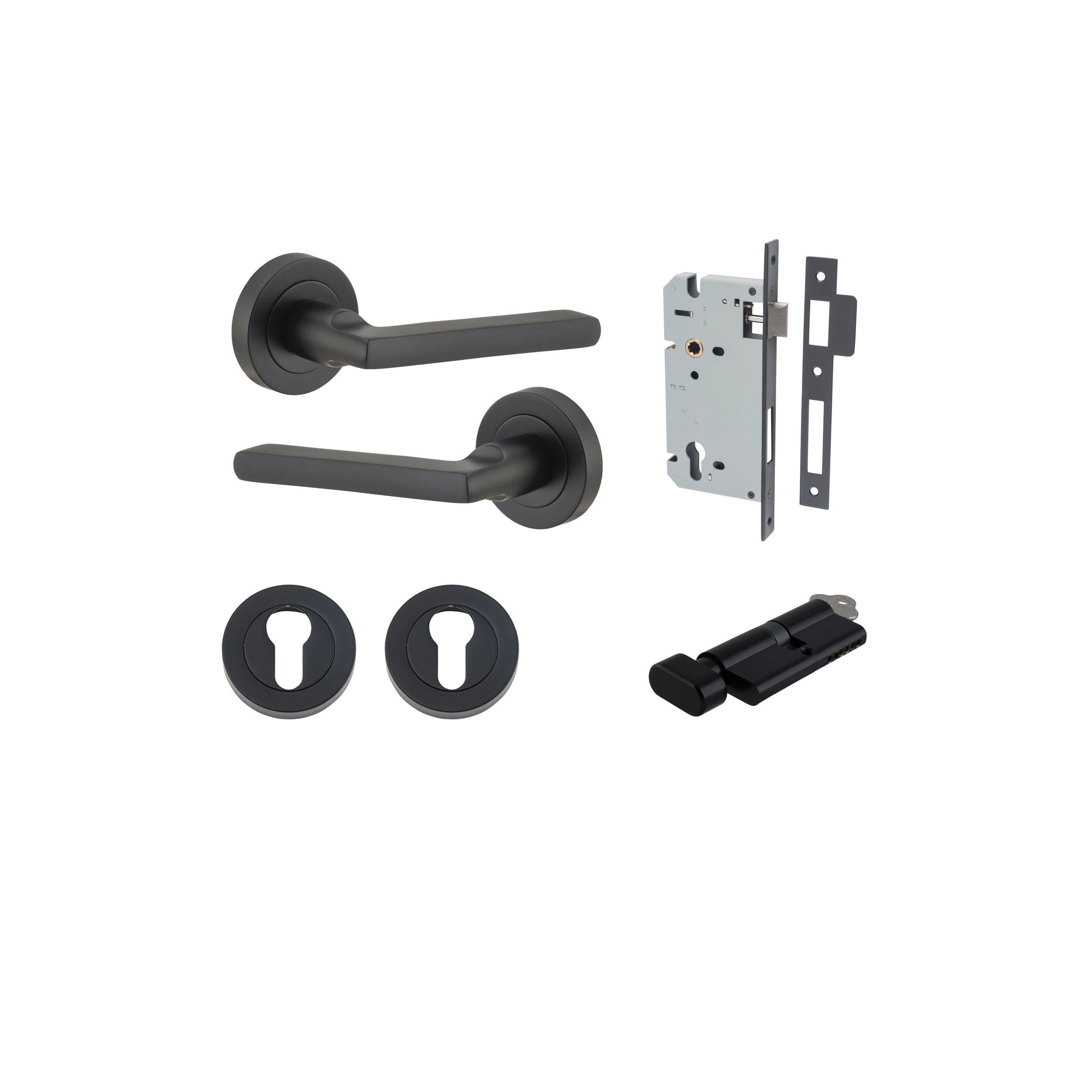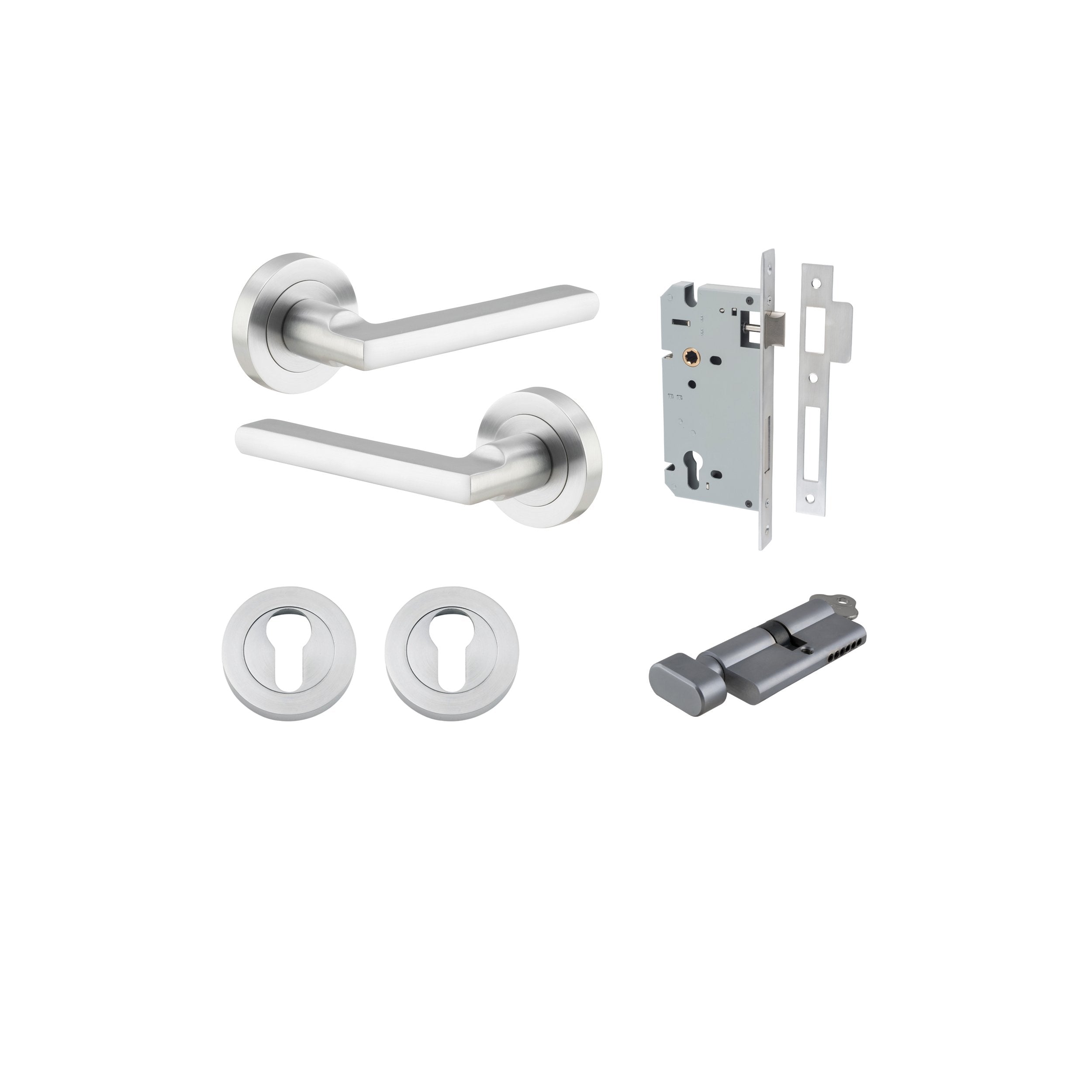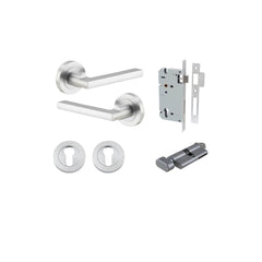 Baltimore Lever - Round Rose Entrance Kit with Separate High Security Lock Turn Cylinder