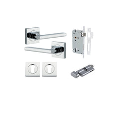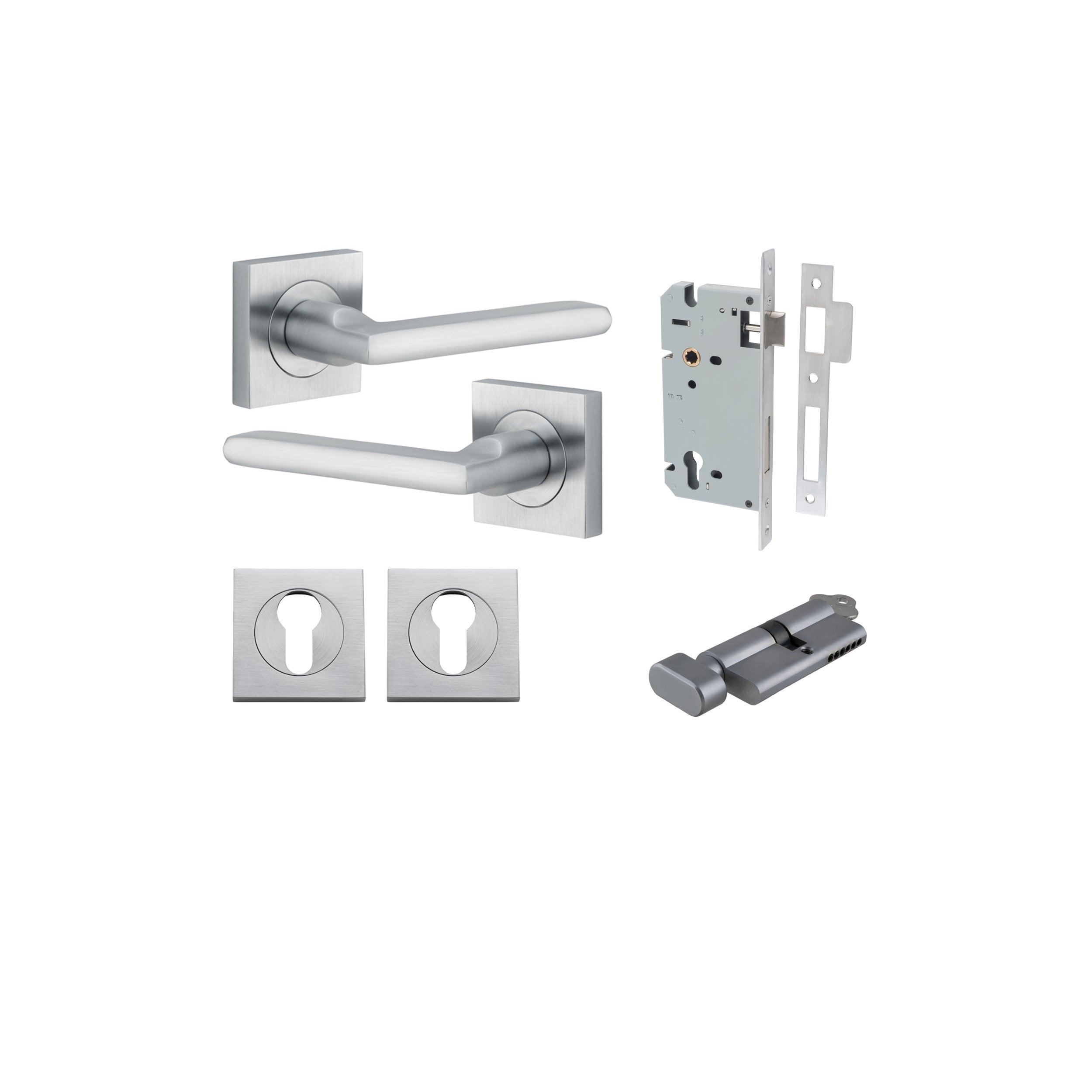 Baltimore Lever - Square Rose Entrance Kit with Separate High Security Lock Turn Cylinder