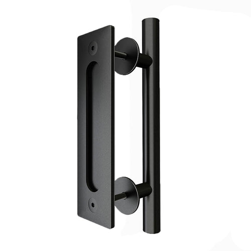 Description: Zanda Barn Door Pull Handle and Flush Pull Kit 5700.BLK Flush Pull has a sleek and minimalist design for a comfortable and secure grip to push and pull the doors effortlessly. Commonly used on sliding doors. Flush Pull Function - Intended for use on sliding doors due to the need for these doors to slide in front of each other or back into a slot, thus eliminating the need for a handle that protrudes from the surface of the doors. Features: Ideal for a barn door Pull Handle and Flush Pull connect by a screw for a secure finish
