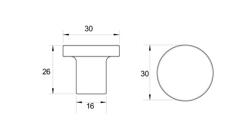 Diameter: 30mm Foot Diameter: 16mm Projection: 26mm