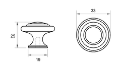 Material: Die-cast zinc Diameter: 33mm Projection: 25mm Width: 33mm Fixing Screws: Supplied Finish: Antique Black