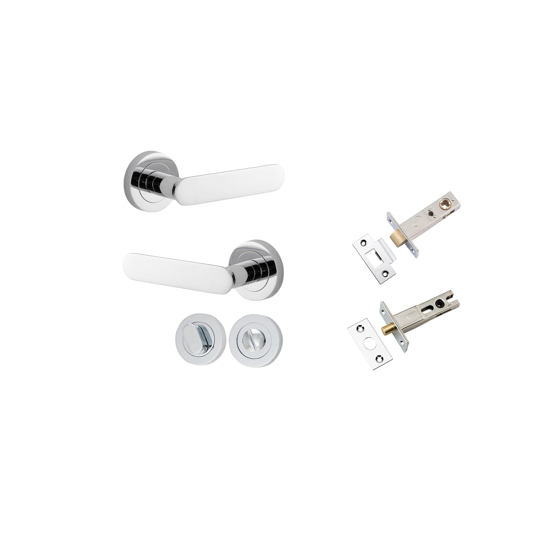 Kit Content: 2 x Bronte Levers on Round Rose in Signature Brass 1 x Tube Latch Split Cam Backset 60mm 1 x Face Plate 1 x Striker Plate 1 x Privacy Turn Oval Concealed Fix Round 1 x Privacy Bolt Round Backset 60mm 1 x Standard Spindle 2 x Sprung Spindles 2 x Privacy Spindles 39 x Screws 2 x Dust Boxes 1 x Drill Template 1 x Instruction Manual Material: Solid Brass