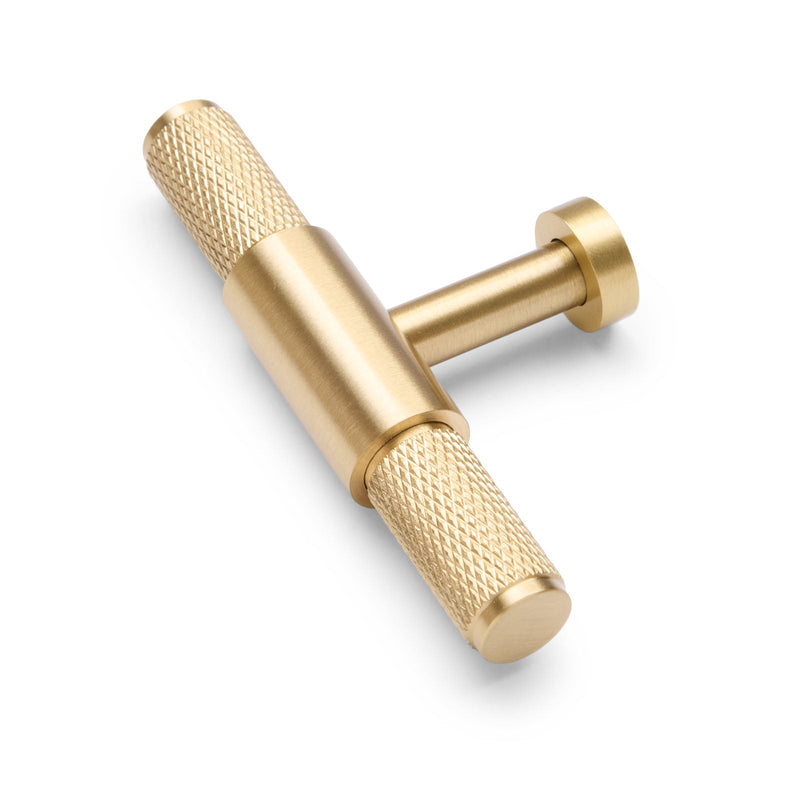 Brushed Brass Knurled Cabinet T-Bar Pull - Miranda