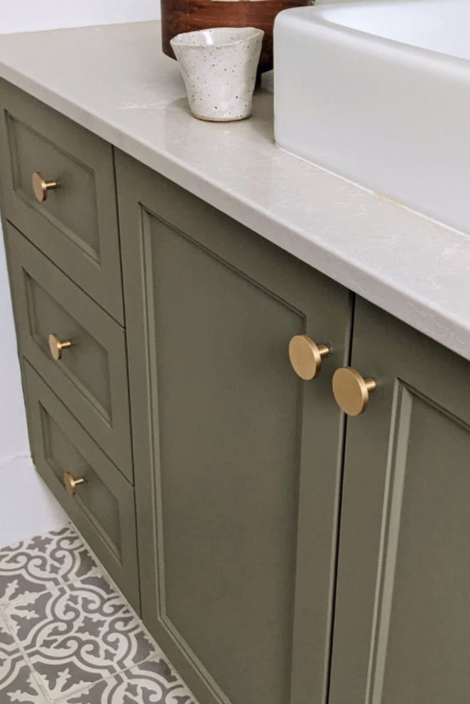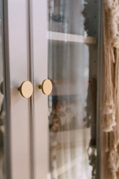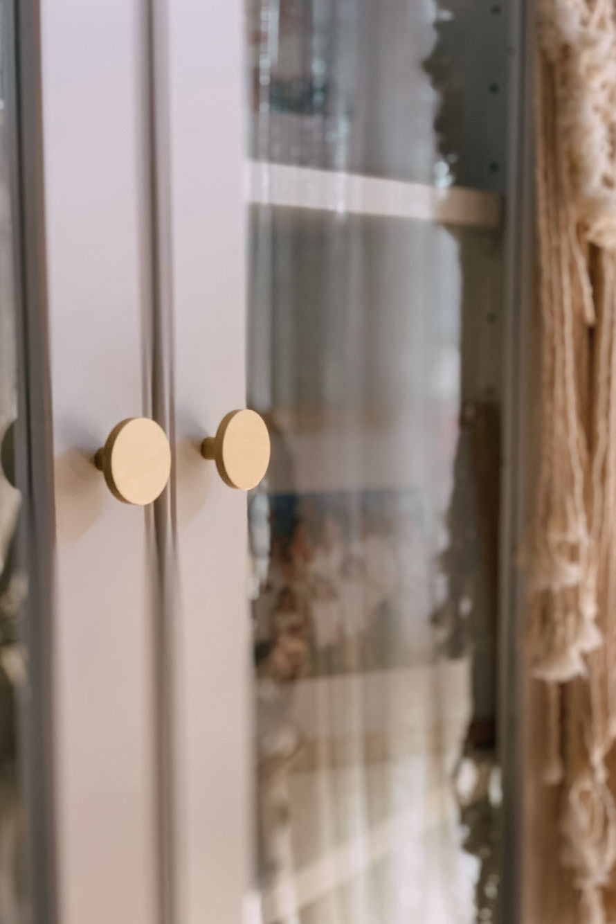 Part of the solid brass range of cabinet pulls, the Olivia round profile cabinet knobs are available in Gunmetal, Brushed Brass, Brushed Nickel, Matt Black, White or Aged Brass, to suit almost any home.