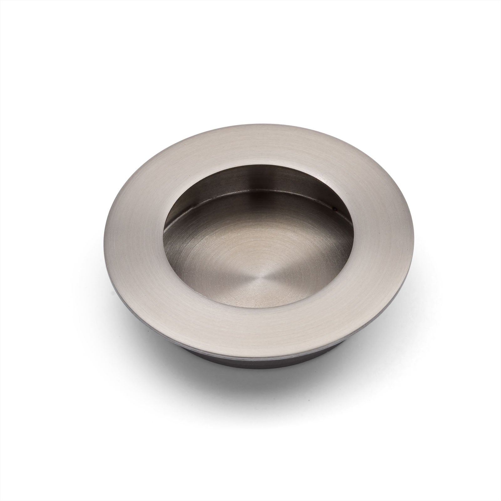 Brushed Nickel Sliding Door Round Flush Pull 65mm