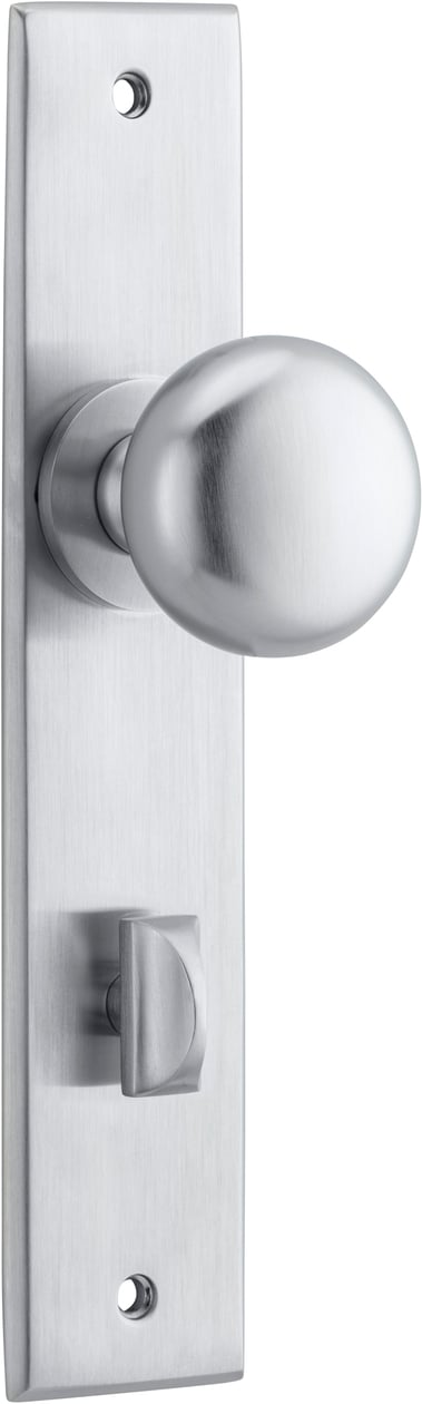 Description: The smooth rounded form of the Cambridge references the Victorian era, whilst its simplicity still provides a high level of versatility in application. The Cambridge is perfectly suited to a concealed fix rose or a variety of backplates. The Cambridge knob can be purchased as a passage, privacy or entrance kit, which includes all components required for your door to function.