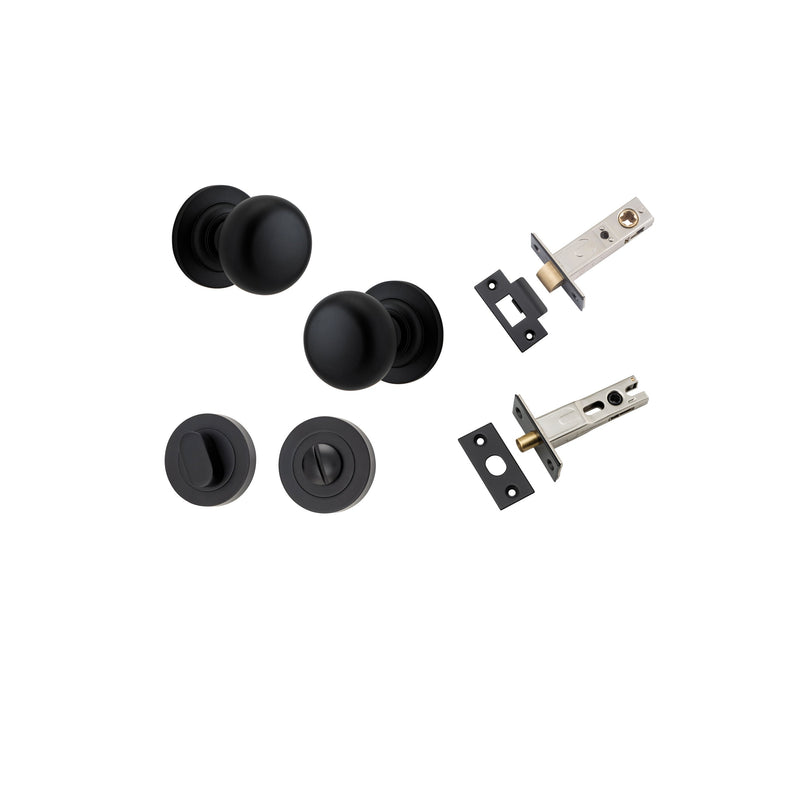 Kit Content: 2 x Levers on Round / Square Roses of your choice 1 x Tube Latch Split Cam Backset 60mm 1 x Face Plate 1 x Striker Plate 1 x Privacy Turn Oval Concealed Fix Round / Square 1 x Privacy Bolt Round Backset 60mm 1 x Standard Spindle 2 x Sprung Spindles 2 x Privacy Spindles 39 x Screws 2 x Dust Boxes 2 x Allen Keys* 4 x Grub Screws* 1 x Drill Template 1 x Instruction Manual *With Square Rose only Material: Solid Brass