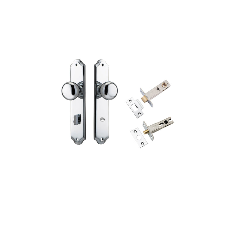 Kit Content: 2 x Levers / Knobs on Backplates of your choice 1 x Tube Latch Split Cam Backset 60mm 1 x Face Plate 1 x Striker Plate 1 x Privacy Bolt Round Backset 60mm 20 x Screws 2 x Tie Bolts 1 x Standard Spindle 2 x Sprung Spindles 1 x Privacy Adaptor 2 x Dust Boxes 1 x Drill Template 1 x Instruction Manual Material: Solid Brass