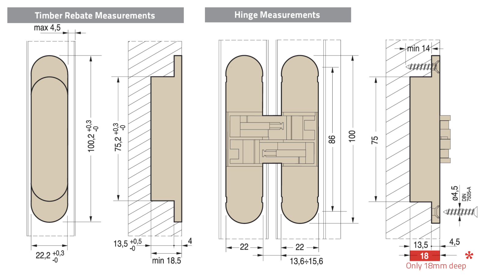 - Only 18mm deep (rebate ideal for cupboards & high frequency opening doors)
