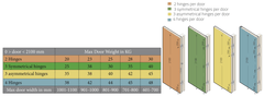 - Load capacity up to 44kg @ 900mm wide door (subject to door specs, see weight chart)