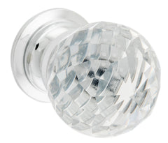 Clear diamond cut glass cupboard knob. Available in 3 sizes.
