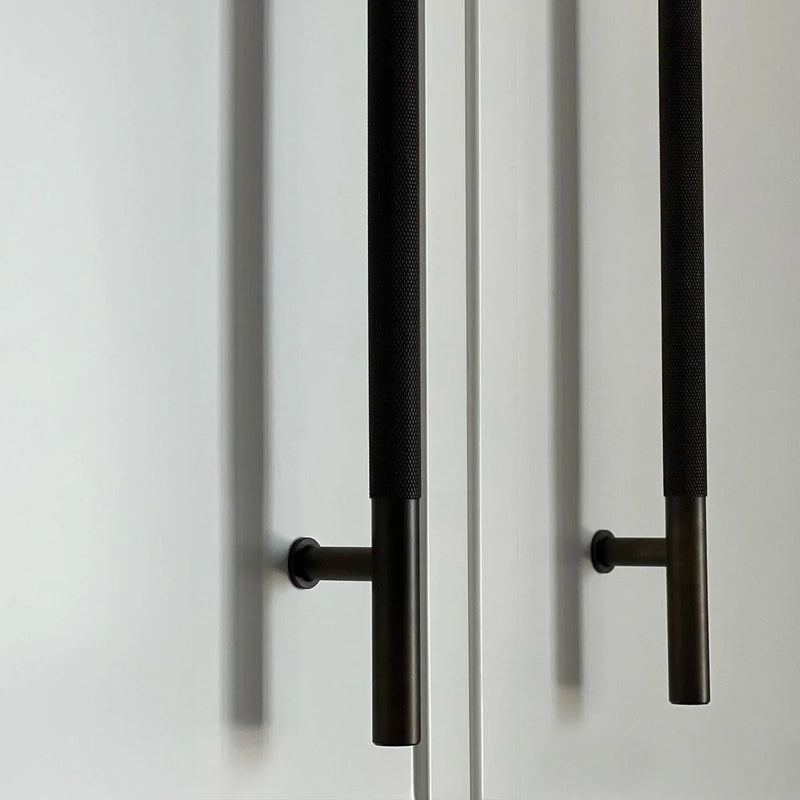 Description: Crafted from 100% solid brass, the Grove 450mm Door Pull is defined by its bold proportions and signature diamond knurlinga refined detail that offers both visual rhythm and tactile grip. Designed to complement larger doors or integrated panels, it brings weight, texture, and contemporary elegance to any space. A striking expression of precision and presence.