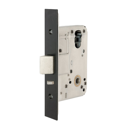 Description: Zanda Commercial Mortice Lock Fire Rated 1450.GN Mortice Lock a pocket cut into the short edge of the door, allows a longer and thicker mortise box to slide into the door itself, providing superior protection. Mortice Lock Function - latch retracted by knob/lever from either side. Deadbolt extended or retracted by key from outside or turn knob from inside.