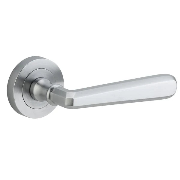 Description: The Copenhagen lever is a stunning example of 20th-century European style, displaying both elegance and sophistication. Its bold and striking design, complete with a decorative faceted surface, makes it a truly impactful addition to any space. The Copenhagen lever effortlessly complements any interior design style and is guaranteed to draw attention wherever it's placed. The Copenhagen lever can be purchased as a passage, privacy or entrance kit, which includes all components required for your door to function.