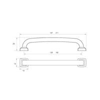 Specifications: Material: Die-Cast Zinc Overall Length: 147mm Center to Center: 128mm Projection: 29mm Width: 19mm Size: 128mm