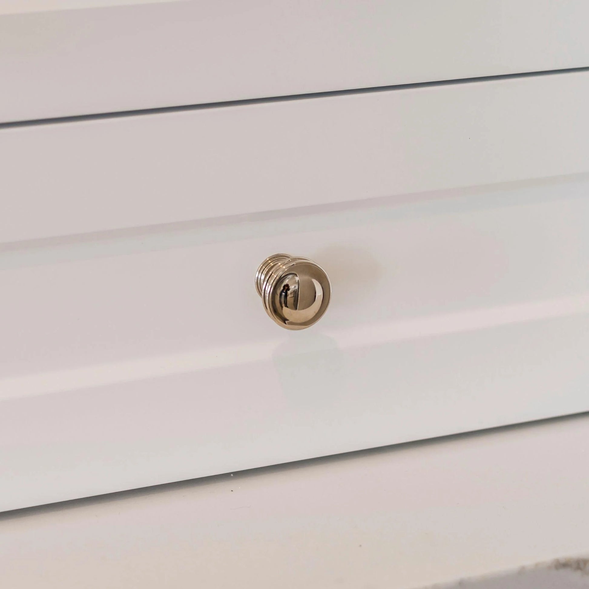 Description: The Decade 35mm Dome Knob features a timeless, rounded shape that exudes understated elegance. Crafted from solid brass, its smooth dome profile with ridged detailing at the sides and base, adds a sense of classic luxury to any space. Whether in traditional or modern interiors, this knob brings a refined finish to cabinetry or furniture. Part of the Decade collection, it pairs effortlessly with other handles and pulls for a cohesive look.