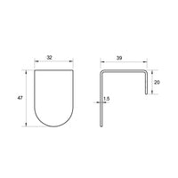 Specifications: Material: Stainless Steel Diameter: 32mm Centre to Centre: 16mm Projection: 39 less thickness of board Width: 47mm Size: 32mm