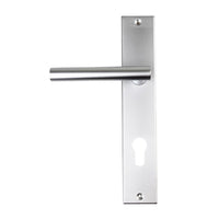 Nidus Domici Door Lever On Longplate LP-DOM-E-CP-LH Door Lever can be found on all types of doors including exterior doors of residential and commercial buildings. Door Lever Function - Lever design provides an easier grip when opening a door and it prevents your hand from slipping. Features: Suits mortice locks with 85mm (handle to euro cylinder) hole centres Does not include a privacy snib function on the inside longplate 10 year limited mechanical guarantee 5 year limited guarantee on plated finish