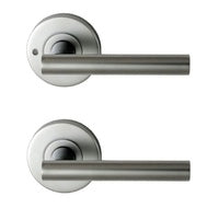 Description: Nidus Mediterranean Lever Domici Privacy Set MDOMPRISC Nidus door hardware is innovative and provides a modern look to any home. They offer a great selection of levers, locks and door accessories. As experienced locksmiths we have purchased their door furniture for many years, having confidence both in the company and its products. Privacy function lever set for use on bathroom and bedroom doors with a snib locking privacy function. This listing is for a Privacy set, for other functions please search our store. For Passage sets (lever sets for internal doors that do not require a privacy function) please search "Domici Passage". For Dummy sets (used on wardrobe, linen press and pantry doors where only a single lever is required) please search "Domici Dummy". Features: Satin chrome finish 63mm diameter rosette suits a 50mm hole 117mm lever 54mm projection Includes 2 handles, latch, strike plate, privacy unit, fixing screws and spindle. Limited Guarantee: 10 years mechanical. 5 years for general finishes. Spacer Rings (Sold separately) For use on doors with a 54mm hole. The spacer ring fits between the Mediterranean lever back plate and the door to provide a greater installation area.