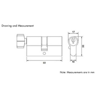 Specifications: Size: 60mm Keying: Keyed to Differ Function: Euro Single Cylinder (Key/Turn)