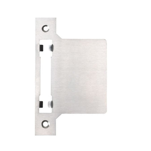 Description: Zanda Extended Strike Plate 1162SS Extended Strike Plate - are primarily used to reinforce door frames and enhance the security of the entry points in a building. Extended Strike Plate Function - provide added security by reinforcing the area where the door latch or bolt engages with the door frame. This makes it more difficult for an intruder to force the door open.
