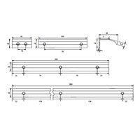 Specifications: Material: Aluminum Length: 100mm Centre to Centre: 76mm Projection: 39mm less thickness of board Width: 10mm Finish: Black Anodised Size: 100mm