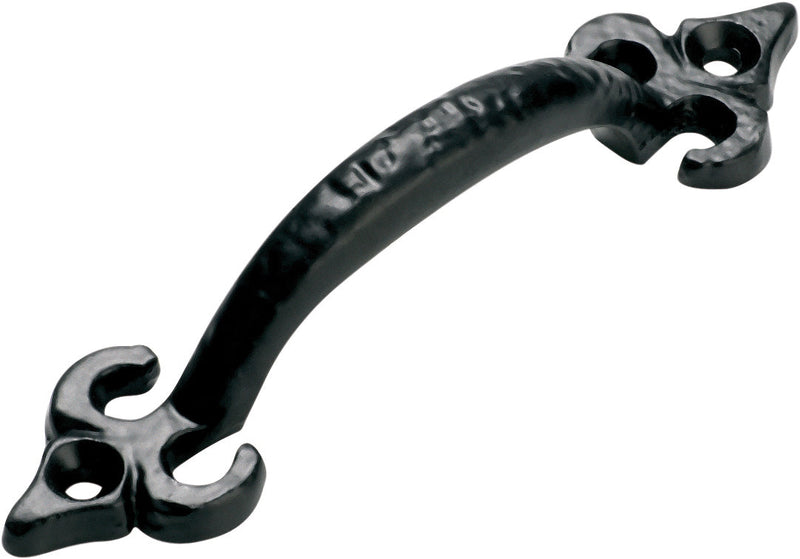 Malleable iron fleur-de-lis cabinet pull handles. Finish Matt Black