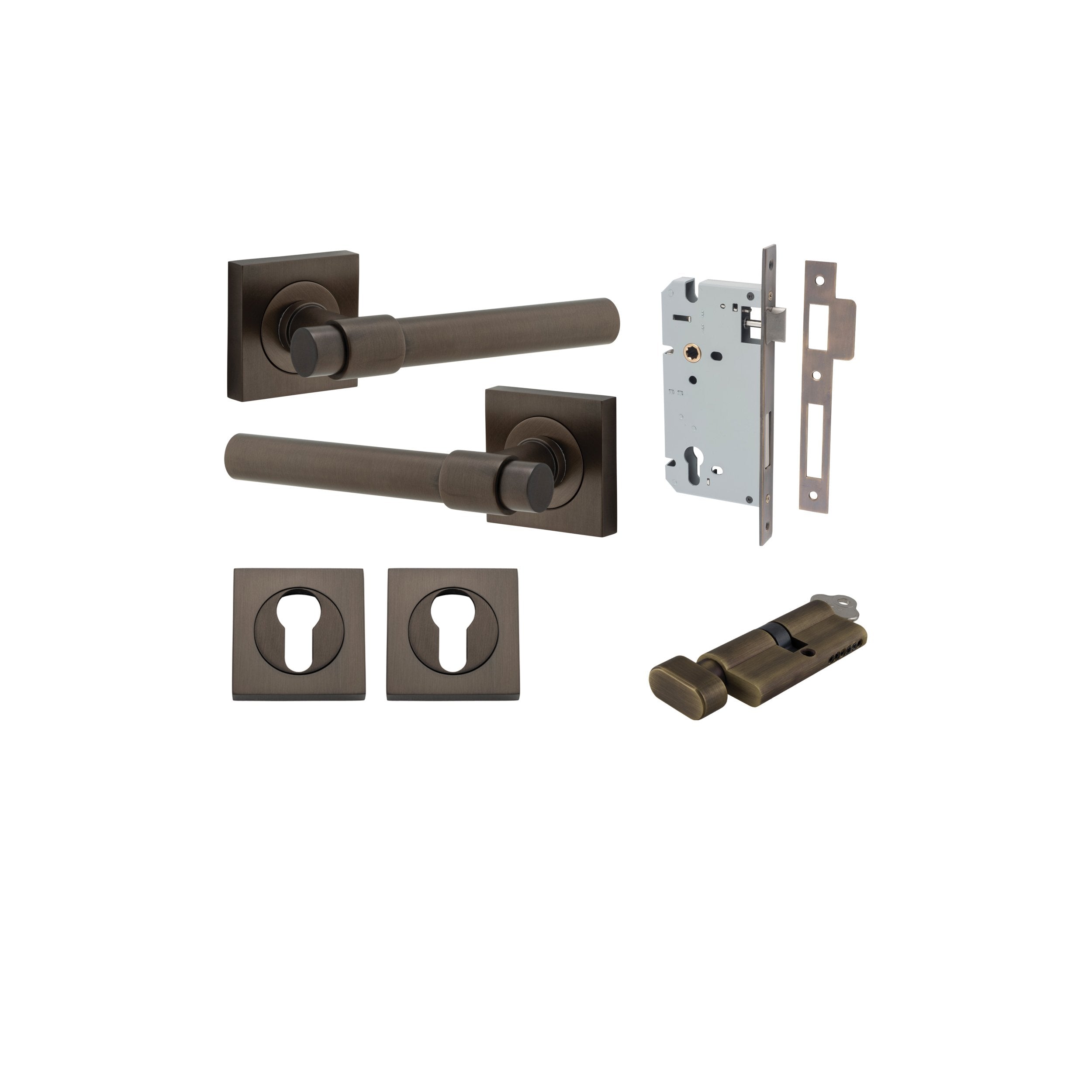 Helsinki Lever - Square Rose Entrance Kit with Separate High Security Lock