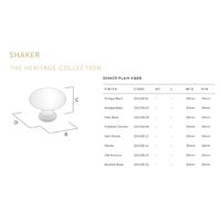 Description: Castella Heritage Shaker Plain Knob 105.030.01 Cabinet Knobs are used as a handling feature for opening and closing cabinet doors or drawers. (e.g. Usually used but not limited on kitchen cabinets and drawers, pantries, dressers, and many other small storage) Cabinet Knob Function - Facilitates the operation of cabinet doors and drawer by gripping the pull knob before pulling it to open or close the cabinet door or drawer. Features: The Shakers were a religious group that broke from the Quakers in the late 18th century and were known for the quality of their workmanship being simple in style, durable and functional Shaker style suits country, traditional and minimalist style kitchens The timelessness of the Shaker range is its simple, unpretentious design