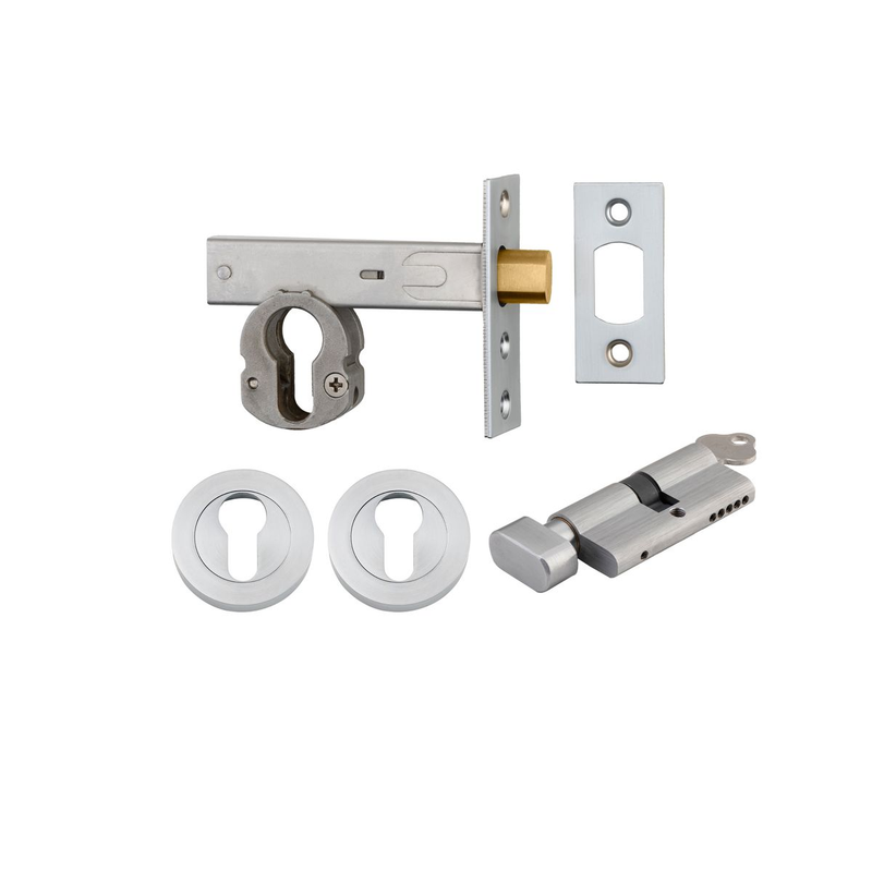 Euro Mortice Deadbolt Kit - 60mm Backset with Round Euro Escutcheon Key/Thumb