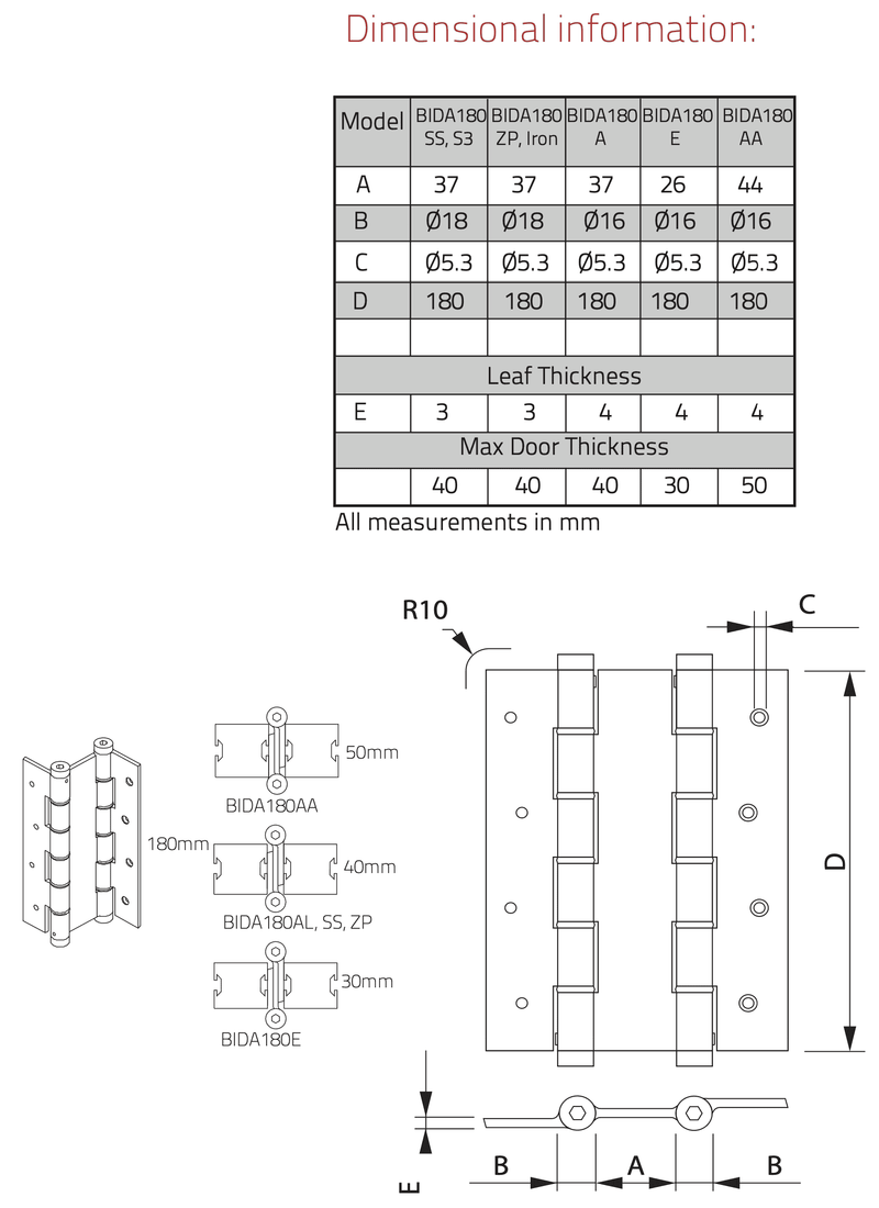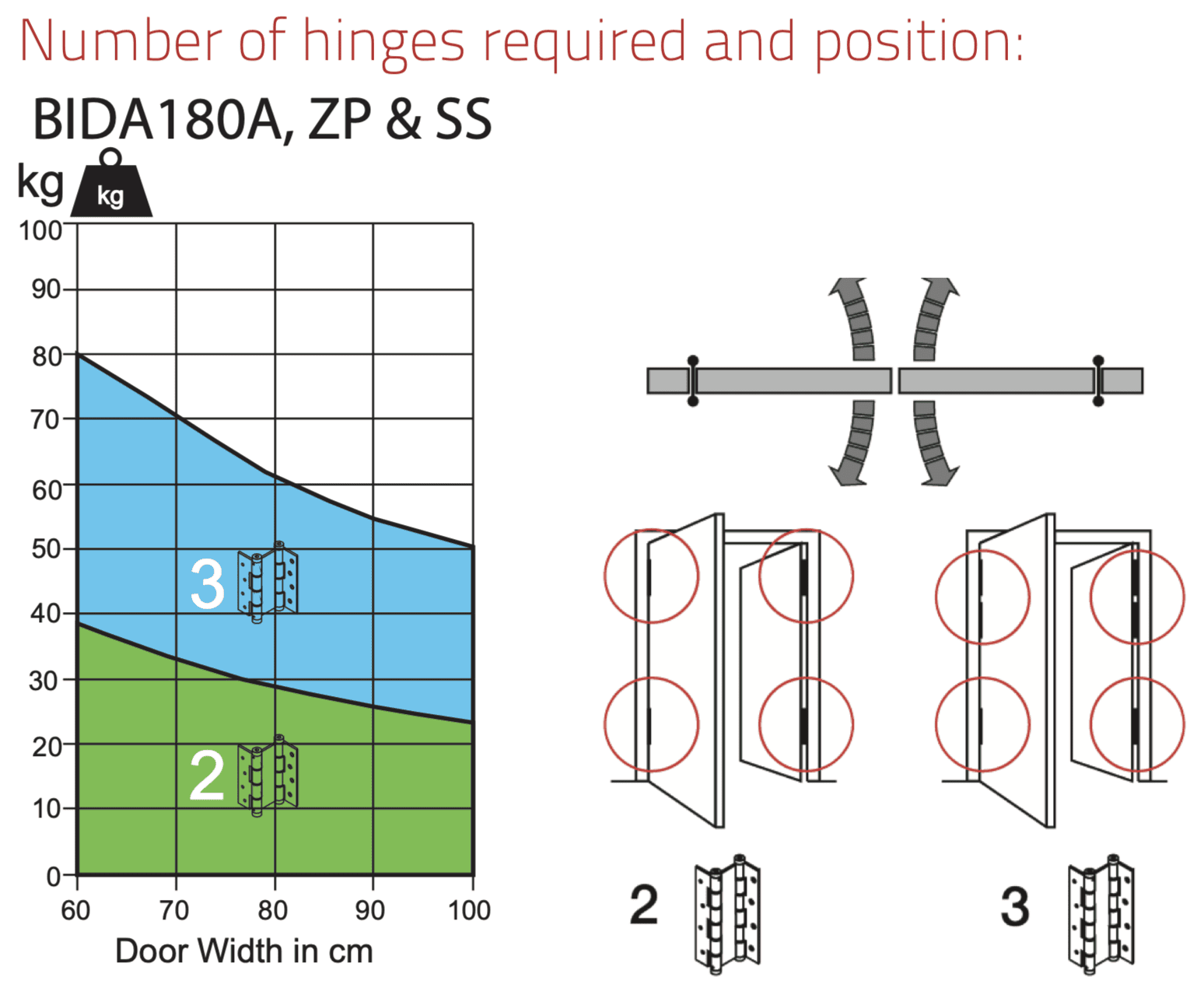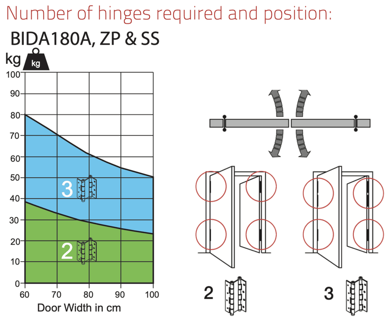 Justor Spring Hinge - BIDA180 - Max Weight 50kg @ 1000mm