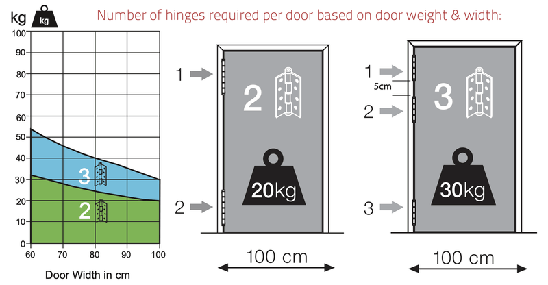 - Supports up to 30kg for a 1000mm wide door (subject to door specs, see weight information)