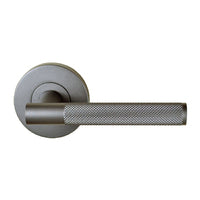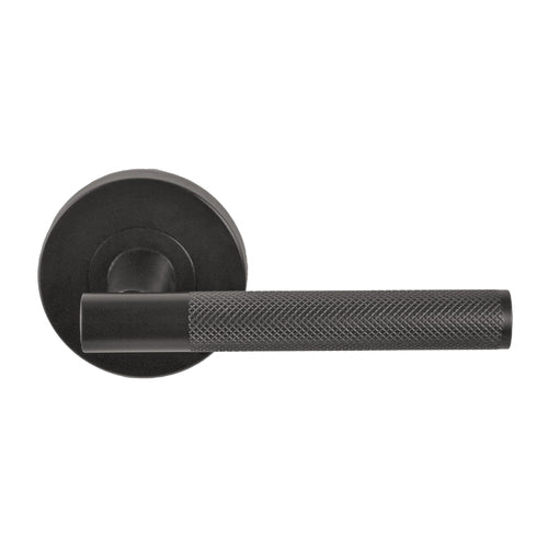 Description: Nidus Knurled Domici Lever on Rose Leverset MDOMKPAS-BL Door Lever on Rose can be used on any internal door inside your home. Simply combine the lever on rose door handle with a combination of latches, locks and thumb-turns, depending on the room and requirements. Door Lever on Rose Function - a door handle where the lever is fixed to a circular plate.