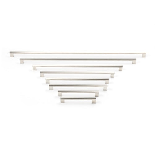 Specifications: Centre: 128mm 160mm 192mm 288mm Length: 148mm 180mm 212mm 308mm Projection: 34mm Width: 14mm Finish: Satin Stainless Steel