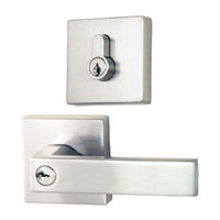 Description: Nidus Lonsdale Door Lever Square Entrance Set P-L-SQ-COMB-BN Entrance Lock is defined as a lock that can be unlocked by a key from the outside when the outer knob/lever is locked by a turn button on the inside knob/lever. The inside knob/lever is always unlocked Entrance Lock Function - Outside key unlocks the outside knob/lever, the inside knob/lever is free at all times, push button locks the outside knob/lever Includes: 1 x Entrance lever set 1 x Double cylinder Eurobolt