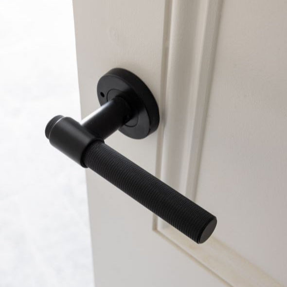 Matt Black Knurled Privacy Door Handle - Rosedale