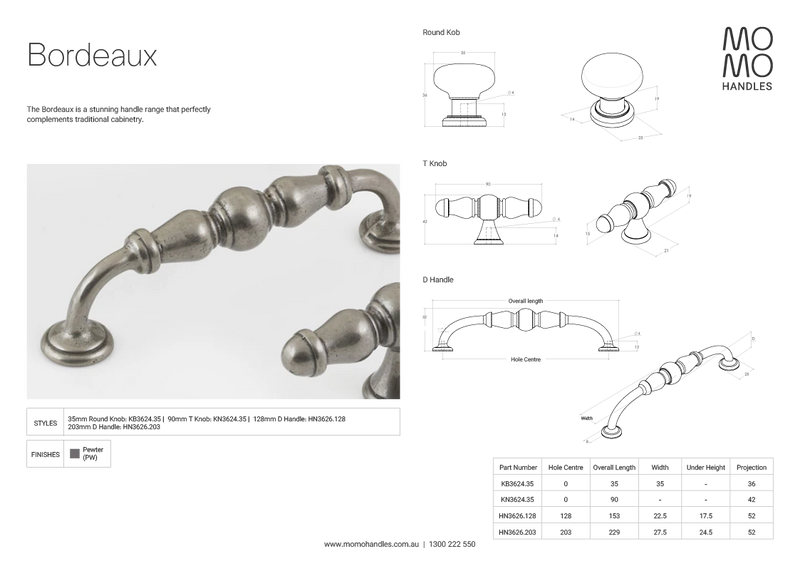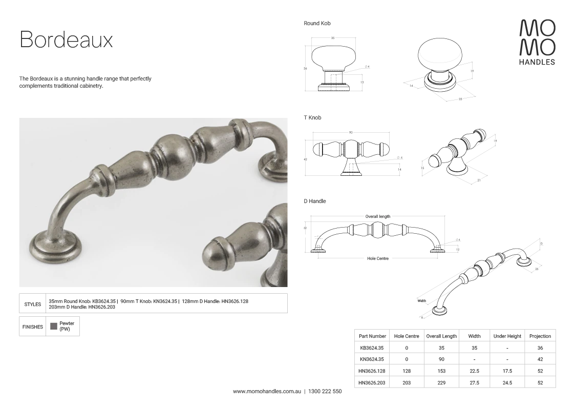 Description: The Bordeaux is a stunning handle range that perfectly complements traditional cabinetry. Material: Cast Iron Standard 22mm handle screws included, if a different size is required, please Click here