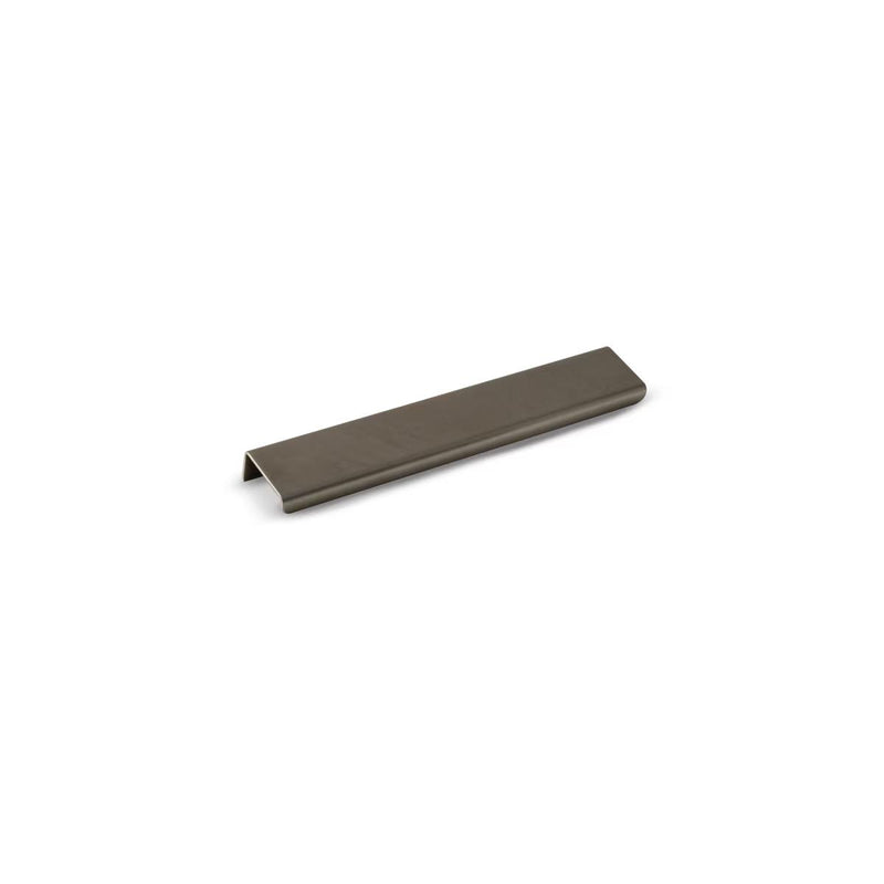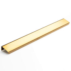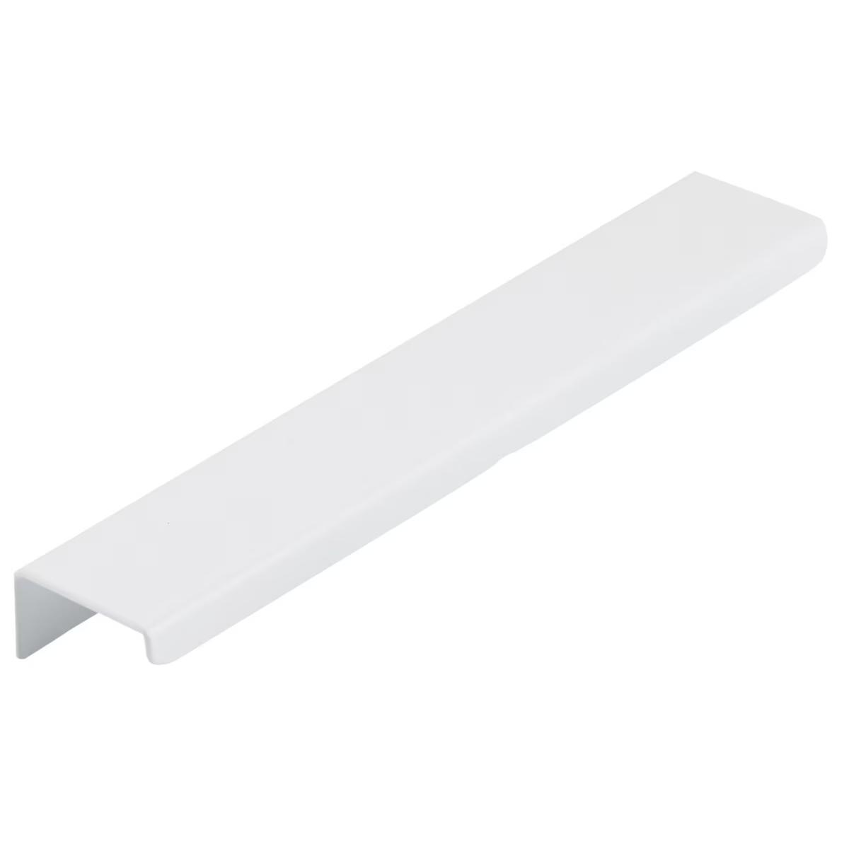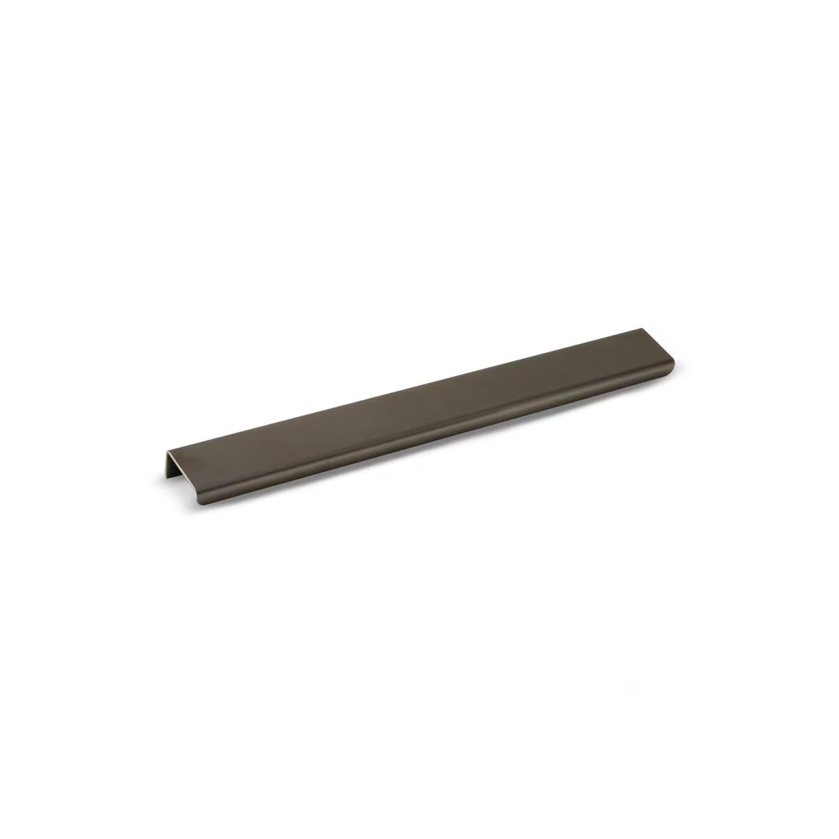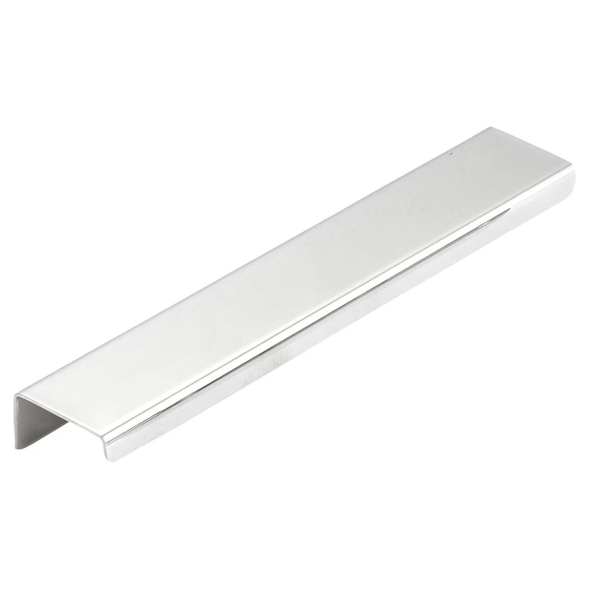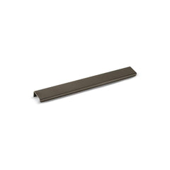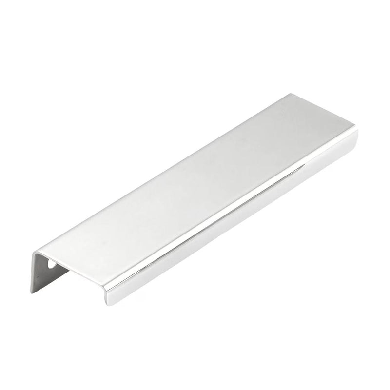 A minimalist profile handle with straight, clean lines. Screws to the rear of the cabinetry.