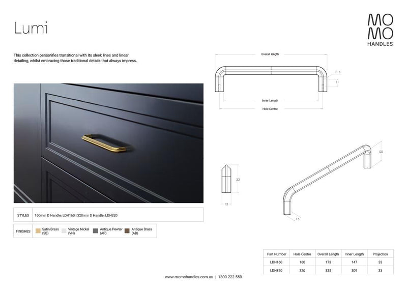 Description: This collection personifies transitional with its sleek lines and linear detailing, whilst embracing those traditional details that always impress. Material: Zinc Alloy Standard 22mm handle screws included, if a different size is required.