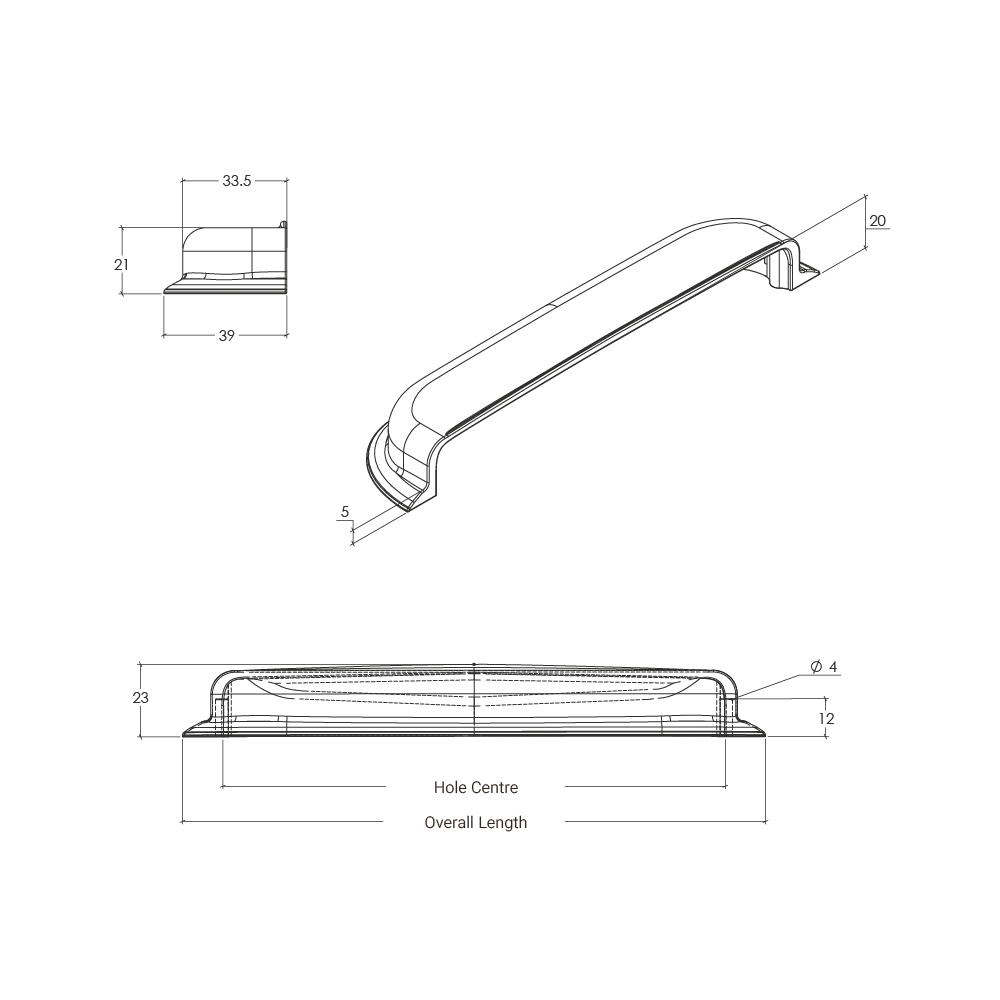 | Part Number | Hole Center | Overall Length | Projection |