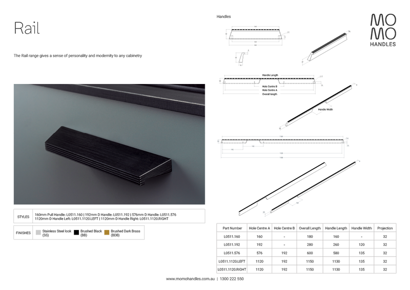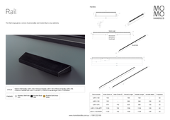 Description: The Rail range gives a sense of personality and modernity to any cabinetry. Material: Aluminium Standard 22mm handle screws included, if a different size is required.