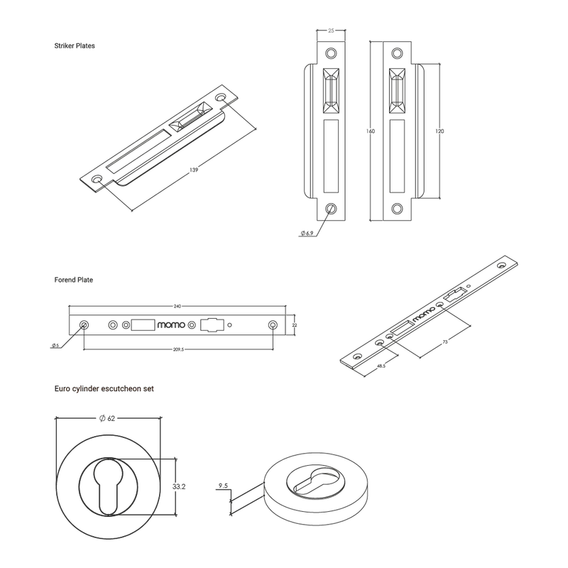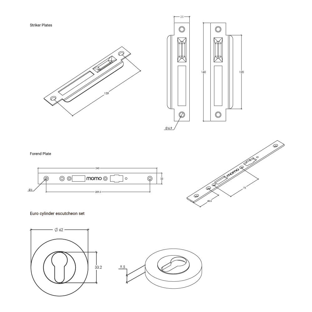 Description: Manufactured from solid brass Quality construction and robust finish coatings Unique engineering for easier installation and smooth operation Each kit is supplied with colour-matched installation hardware and instructions Euro key barrel not supplied and must be purchased separately Each kit contains: 1 x Roller mortice lock 1 x Euro cylinder escutcheon set 1 x Roller mortice lock forend plate 1 x Roller mortice lock strike plate (left hand) 1 x Roller mortice lock strike plate (right hand) 1 x Mortice lock dust box