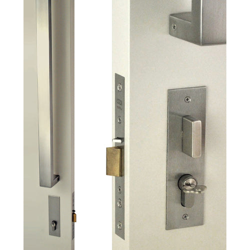 Description: Nidus OZI 4 Mortice Lock Pull Handle Set CDL-888-O-REC-BL Pull Handle - Used as a handling feature for opening and closing doors. (e.g. Usually used but not limited to entrance doors and some commercial buildings) Pull Handle Function - Facilitates the operation of doors by gripping the pull handle with one or both hands before pulling it to enter or exit the door. Includes: 1 x OZI 4 Mortice Lock Body 60mm Backset 1 x OZI 4 Standard Striker Kit 1 x External Escutcheon and Internal Escutcheon/Snib Turn Set 1 x Euro Double Cylinder 1 x PH888-600BL back to back pull handle Features: 3 functions in 1 lock Double cylinder deadbolt - locked both sides Secure latch function - pull door shut from outside, open door with snib turn from inside Snib can be set to hold back function Non-handed One handed entry - key retracts latch