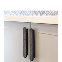 Specifications: Centre to Centre: 96mm Overall Length: 150mm Width: 32mm Projection: 28mm Finishes: Charred Oak