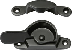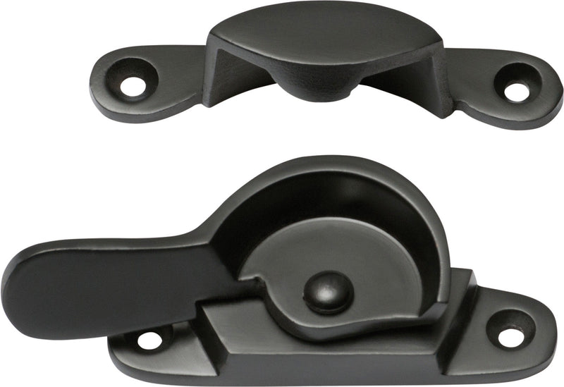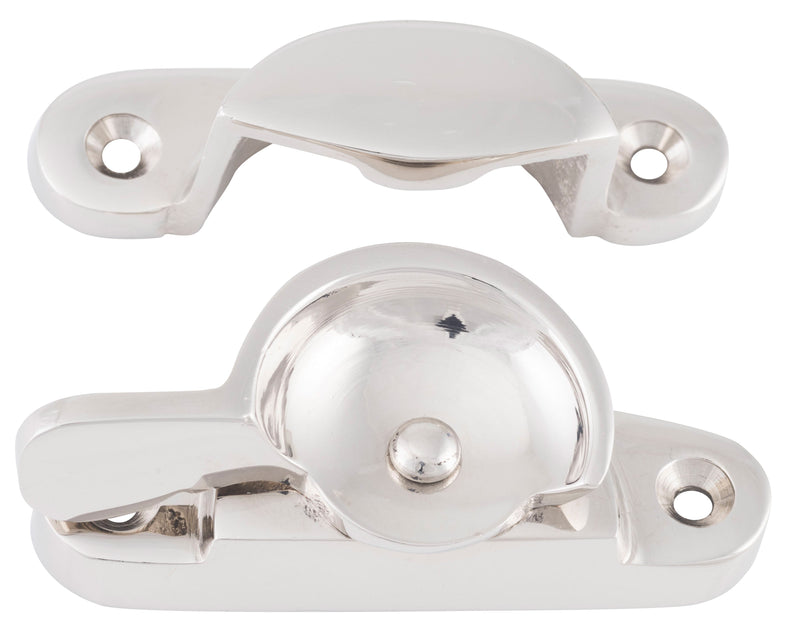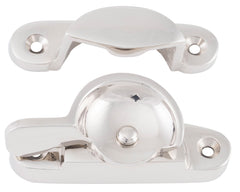Solid brass sash fasteners with narrow 15mm base and 11mm catch.