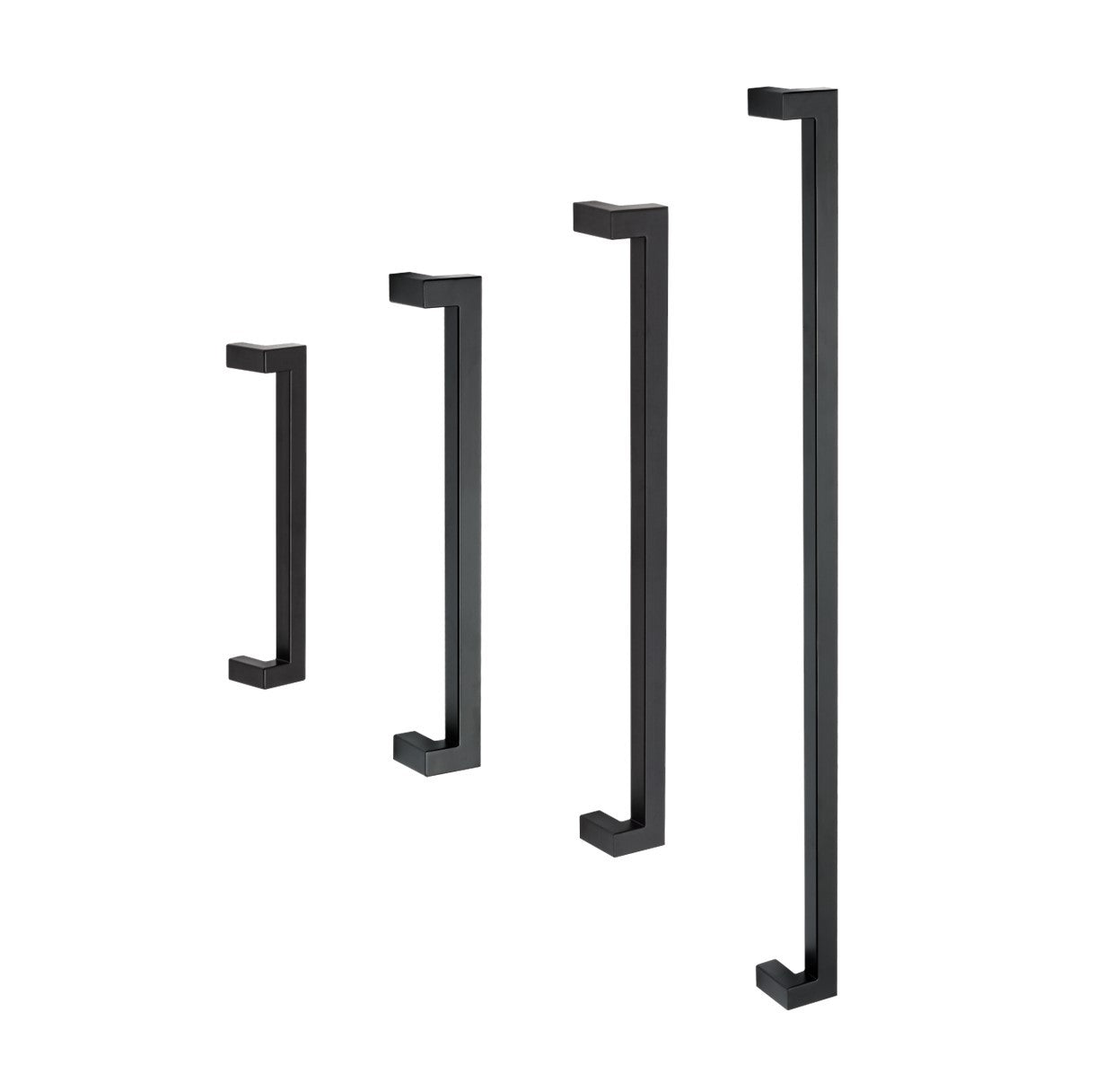 The Nitro offset square Pull Handle is now available in a Matt Black finish. With radiused corners this pull handle is very comfortable in the hand. It is available as a Back to Back pair but also as single fixing with face and rear fixing available on request. Dimensions are as follows;